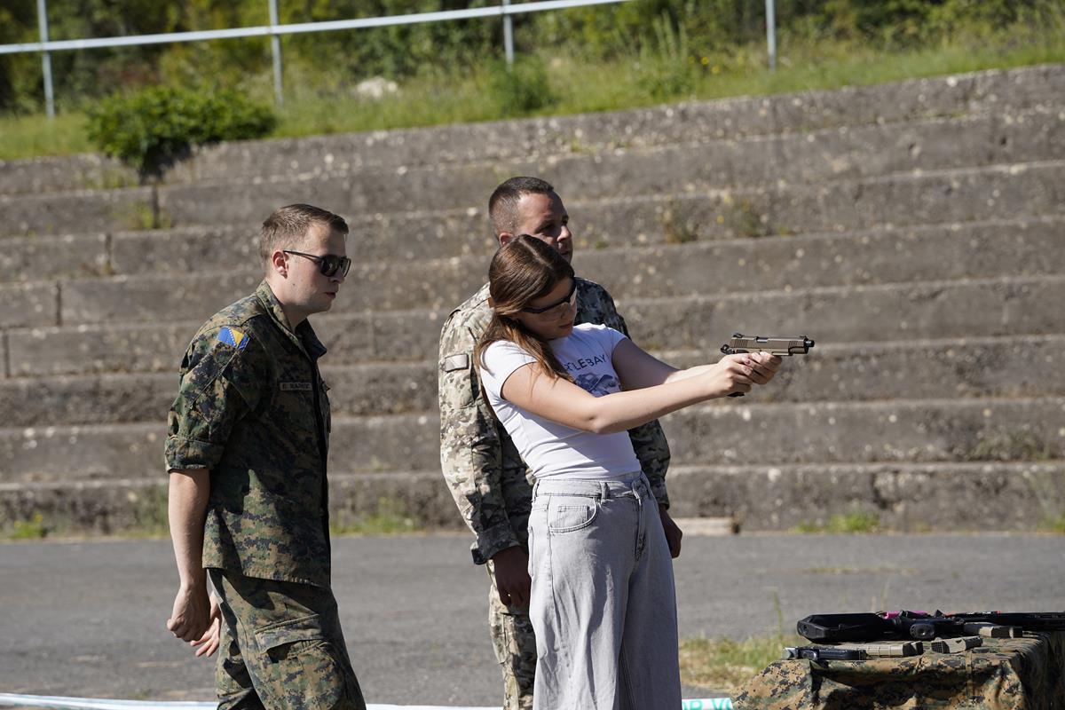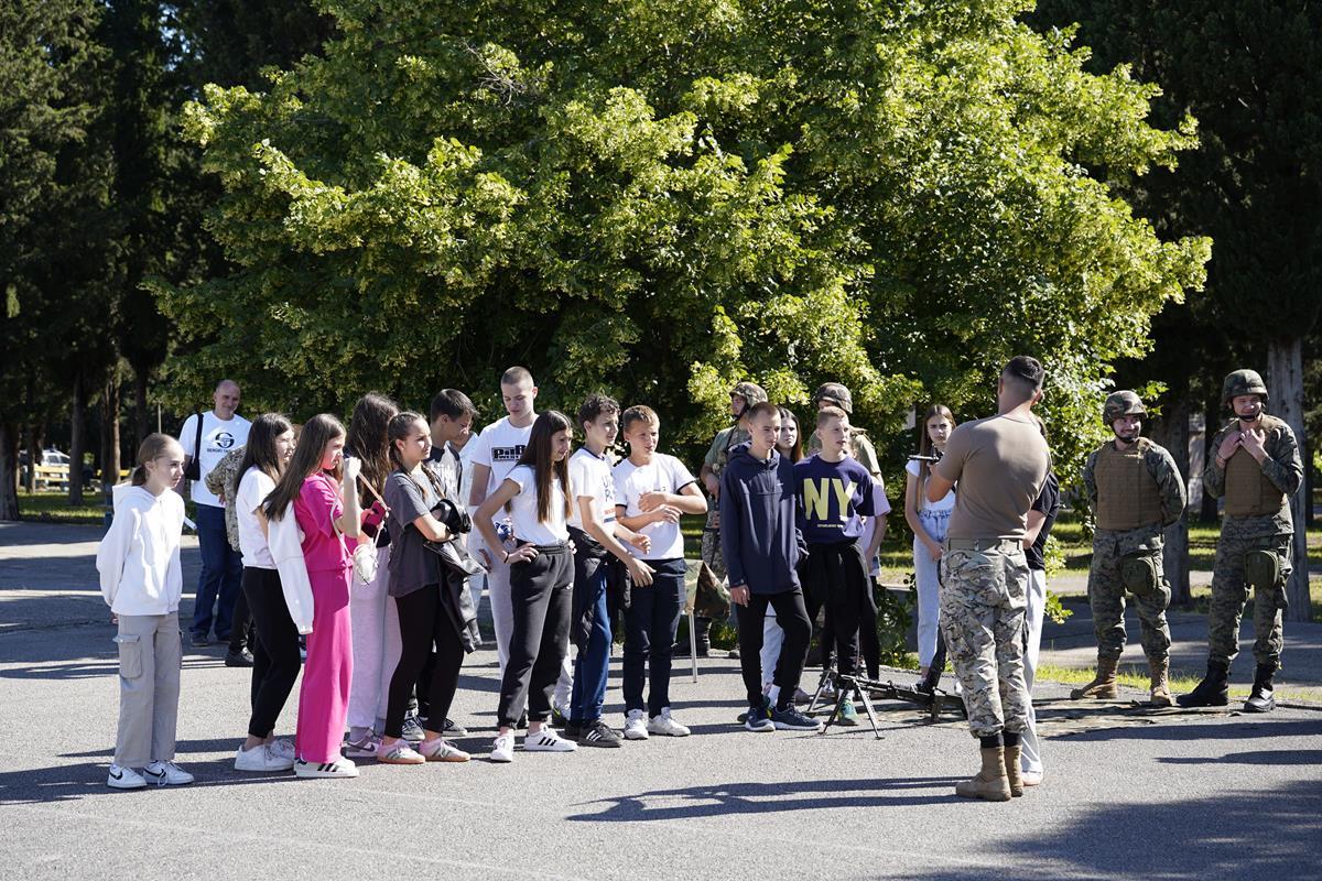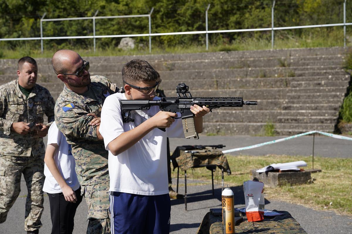 U vojarni Božana Šimovića održan je Dan otvorenih vrata. Oko 100 učenika Osnovne škole Vladimira Pavlovića upoznalo se sa životom i radom pripadnika OS BiH. Brigadni general Slaven Blavicki zapovjednik 4. pješačke brigade, kazao je da se Dan otvorenih vrata organizira kako bi vojni poziv približili mlađim naraštajima. Više poslušajte u tonskom zapisu.