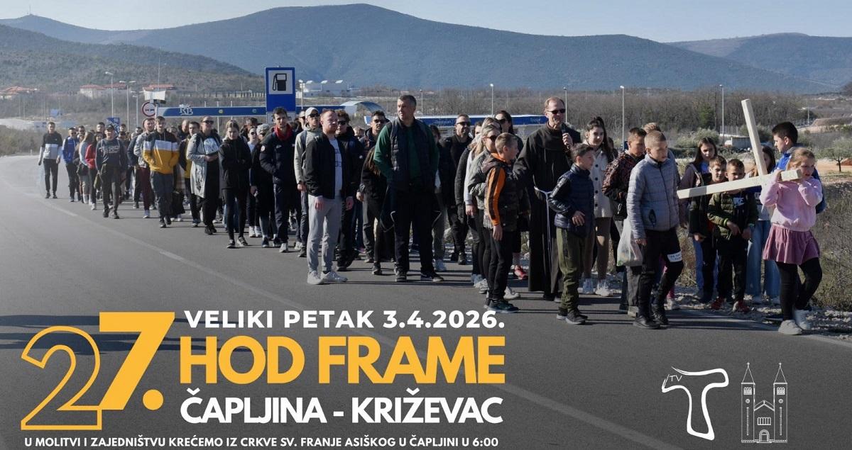 Na Veliki petak, 3. travnja, Frama Čapljina organizira tradicionalni 27. hodočasnički hod koji iz godine u godinu okuplja sve veći broj vjernika iz Čapljine i šire.