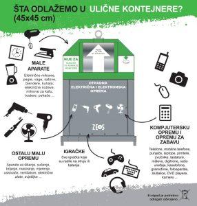 Zbog navedenih štetnih supstanci ee-otpad nije dozvoljeno odlagati zajedno s ostalim otpadom iz domaćinstva, već je potrebno izdvojiti ga i predati ovlaštenim sakupljačima ili odložiti u neki od ZEOS-ovih uličnih kontejnera.