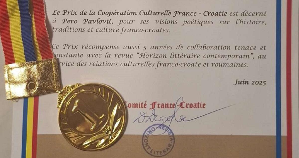 Ova prestižna nagrada priznanje je književniku Peri Pavloviću za njegovih pet godina uporne i stalne suradnje s međunarodnim književnim časopisom ”Horizon litteraire contemporain” u službi francusko-hrvatskih i rumunjskih odnosa.