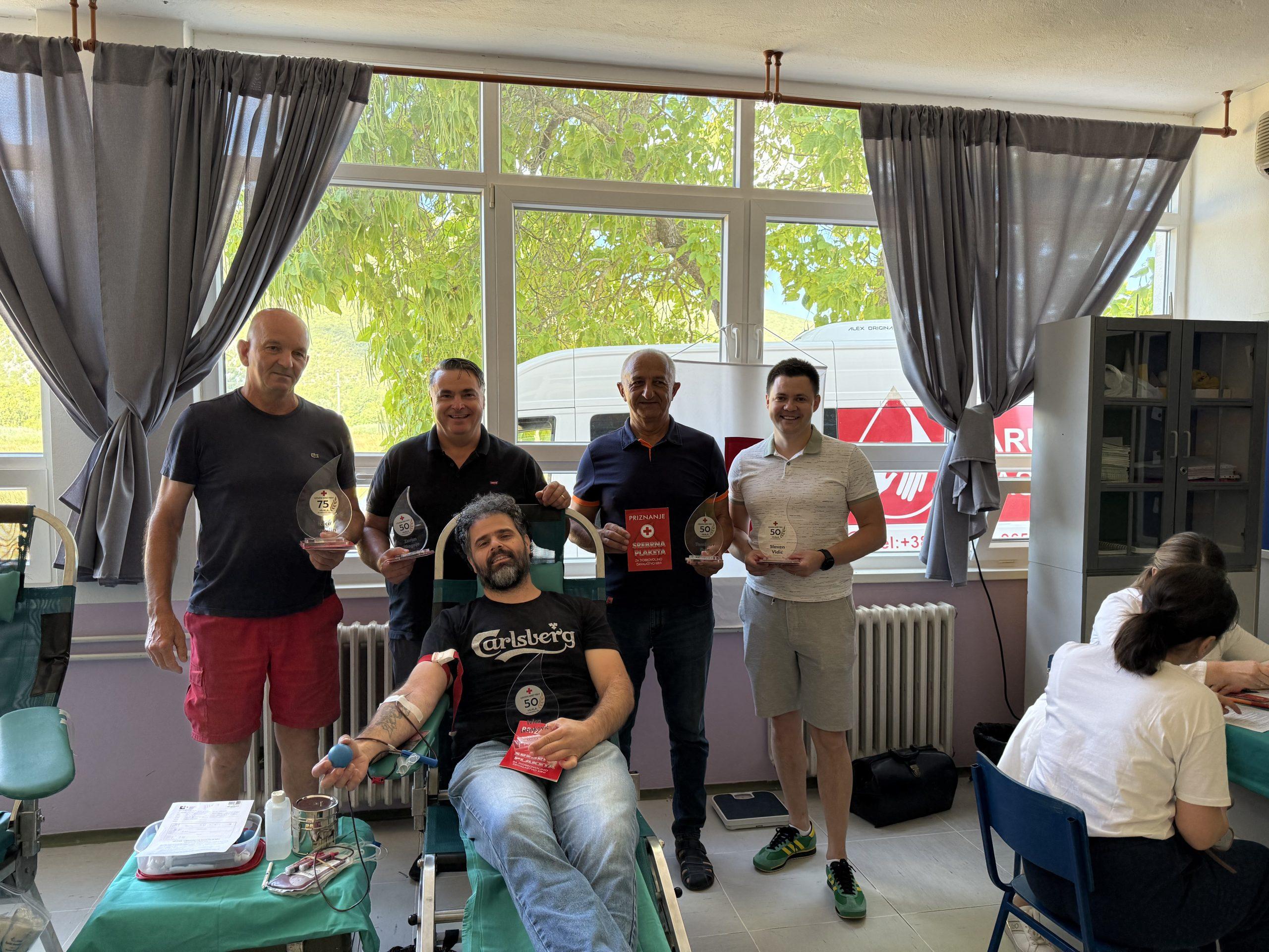 Poseban trenutak akcije bilo je uručenje priznanja darivateljima koji su krv darovali 50 i više puta. Za iznimnih 75 darivanja, Ivici Musulinu dodijeljen je Srebrni znak, dok su za 50 darivanja uručene Srebrne plakete Zoranu Blagoje, Slavenu Vidiću i Ivici Ivankoviću. Također, Tomislav Bule, višestruki darivatelj iz naše zajednice, primio je Srebrnu plaketu za 50 darivanja krvi na 16. Federalnom susretu darivatelja krvi, održanom u Olovu.
