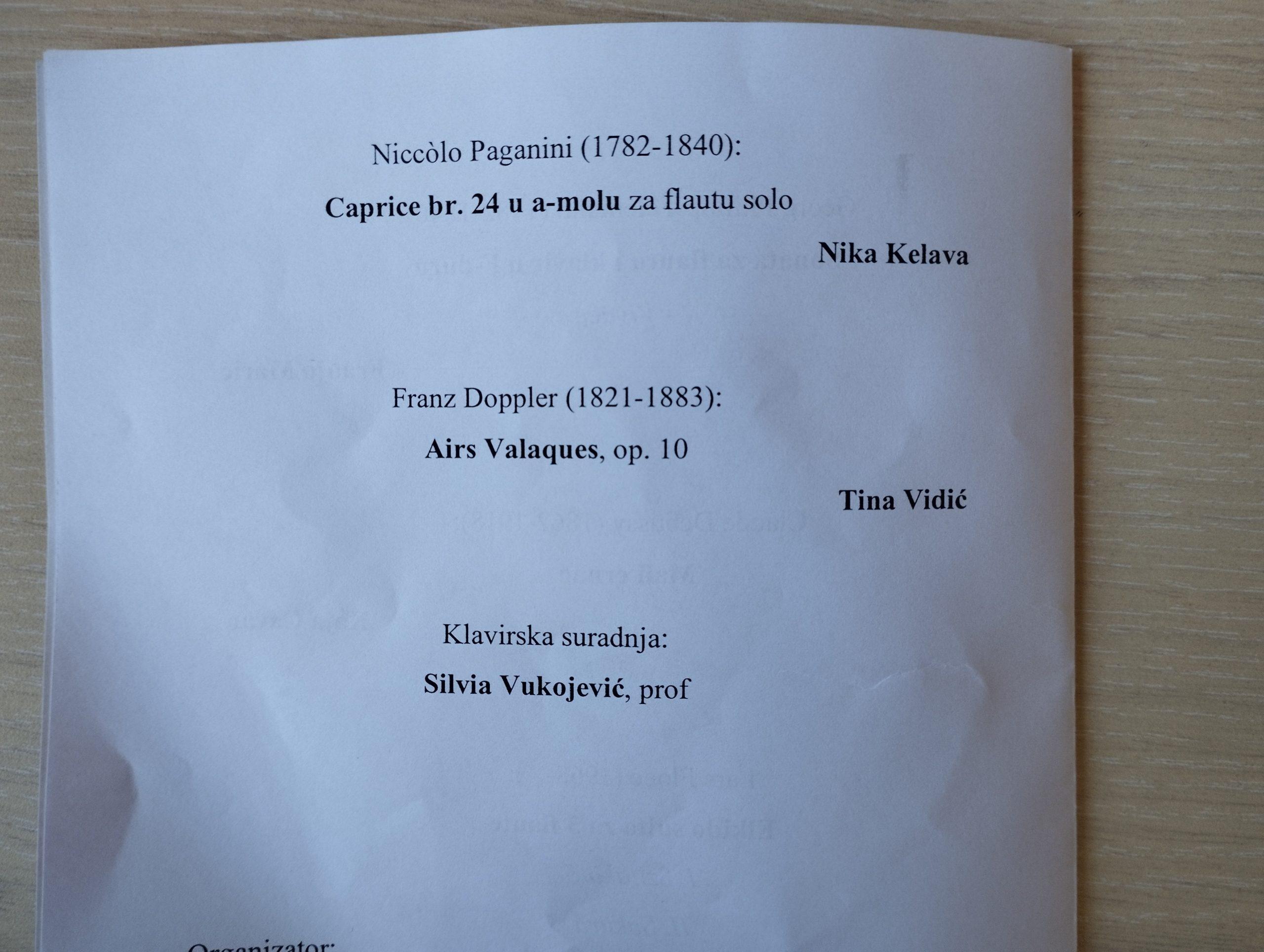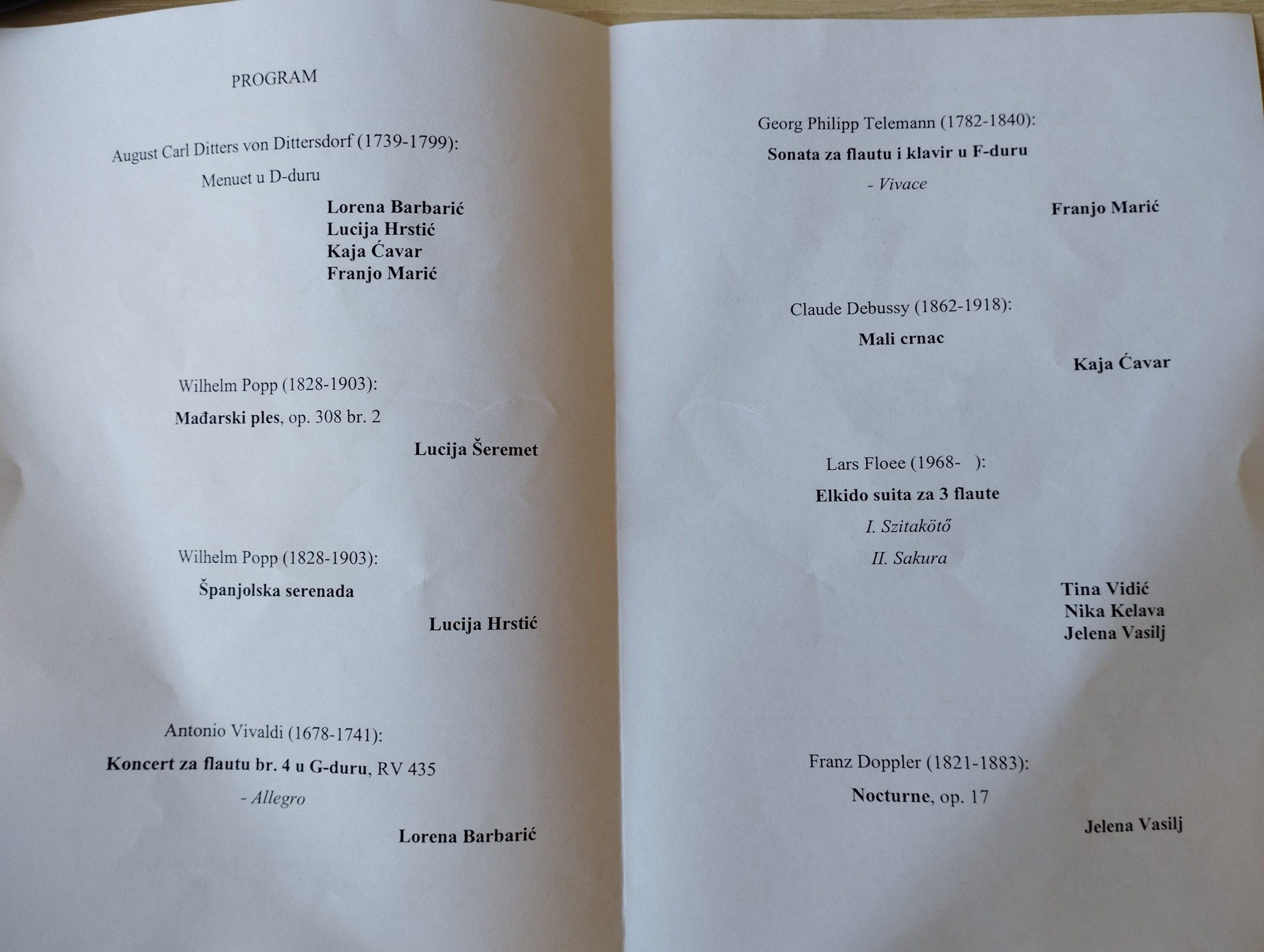 Koncert predstavlja krunu sedmodnevnog rada unutar majstorske radionice za flautu, pod mentorstvom slovenskog flautiste i pedagoga profesora Marka Zupana. Klavirska suradnica bila je profesorica Silvia Vukojević.