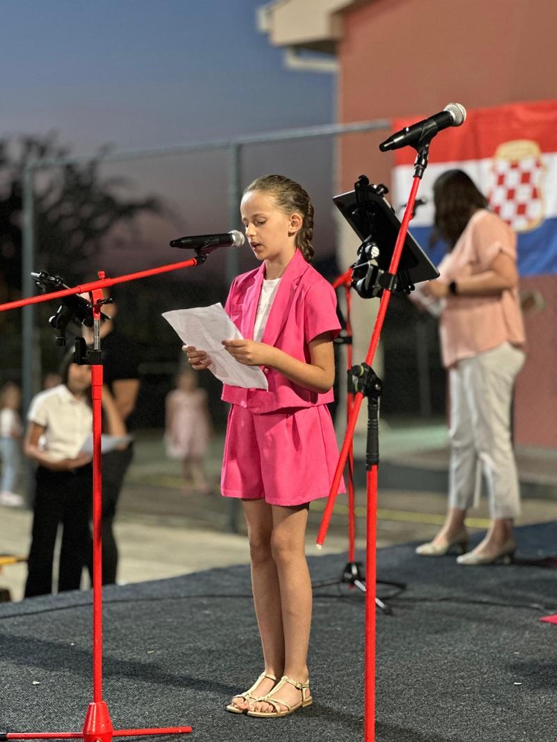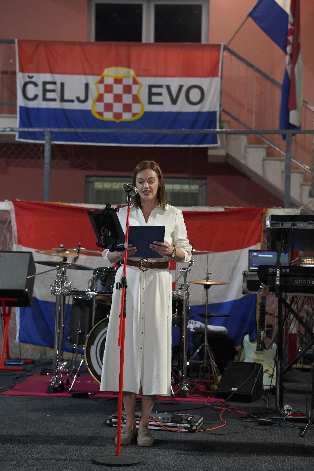 Uslijedio je kulturno – zabavni program u dvorištu područne škole “Lipanjske zore” Čeljevo. Program je započeo himnom hrvatskog naroda i minutom šutnje za sve poginule branitelje. Učenice Petra Jovanović i Andra Mustapić pročitale su prigodne domoljubne pjesme. Nazočnima su se se zatim obratili župnik don Ivo Šutalo koji je blagoslovio sve nazočne, te gradonačelnica Iva Raguž koja je pozdravila sve, te između ostalog istaknula:
