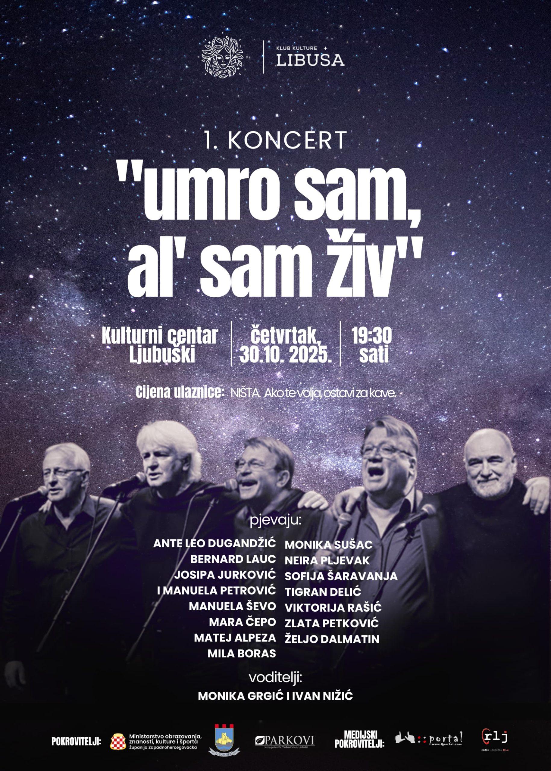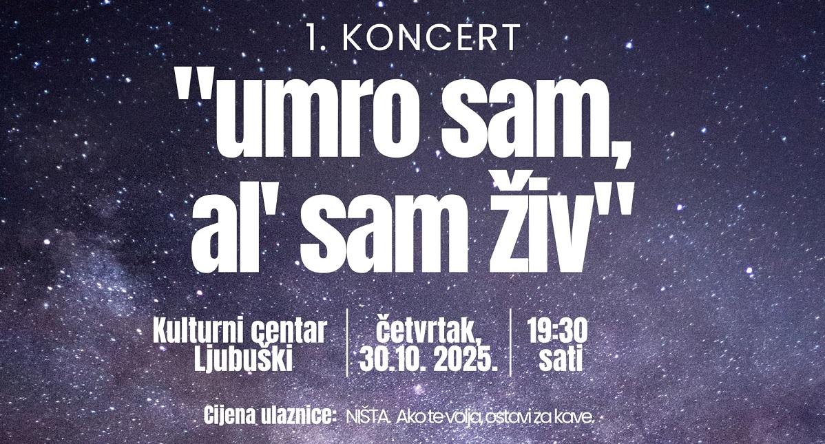Klub kulture „Libuša“ organizira prvi koncert iz ciklusa „Umro sam, al’ sam živ“ u Kulturnom centru Ljubuški.