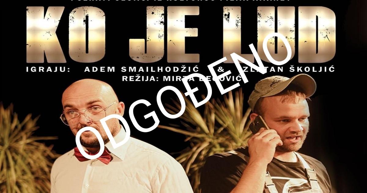 Komedija “Ko je lud” koja je večeras 28. listopada se2023. godine trebala biti odigrana u Kinu Mogorjelo, odgođena je.