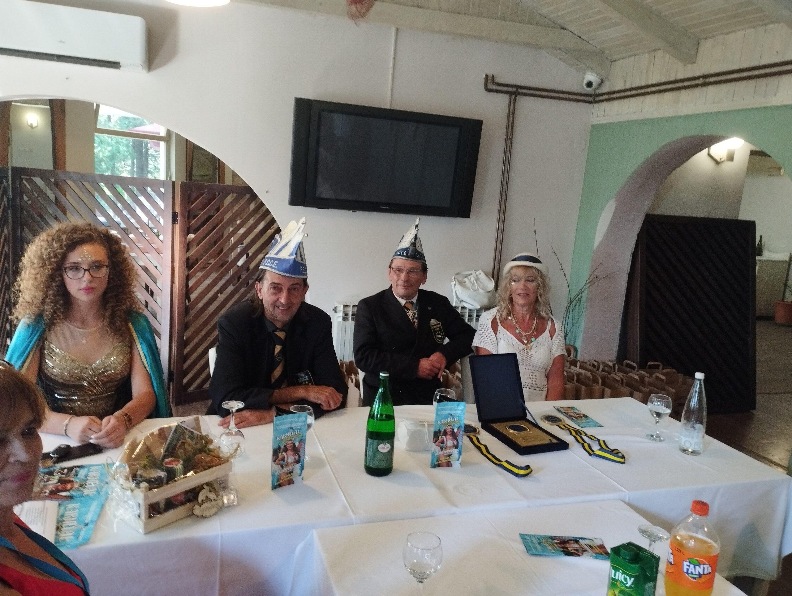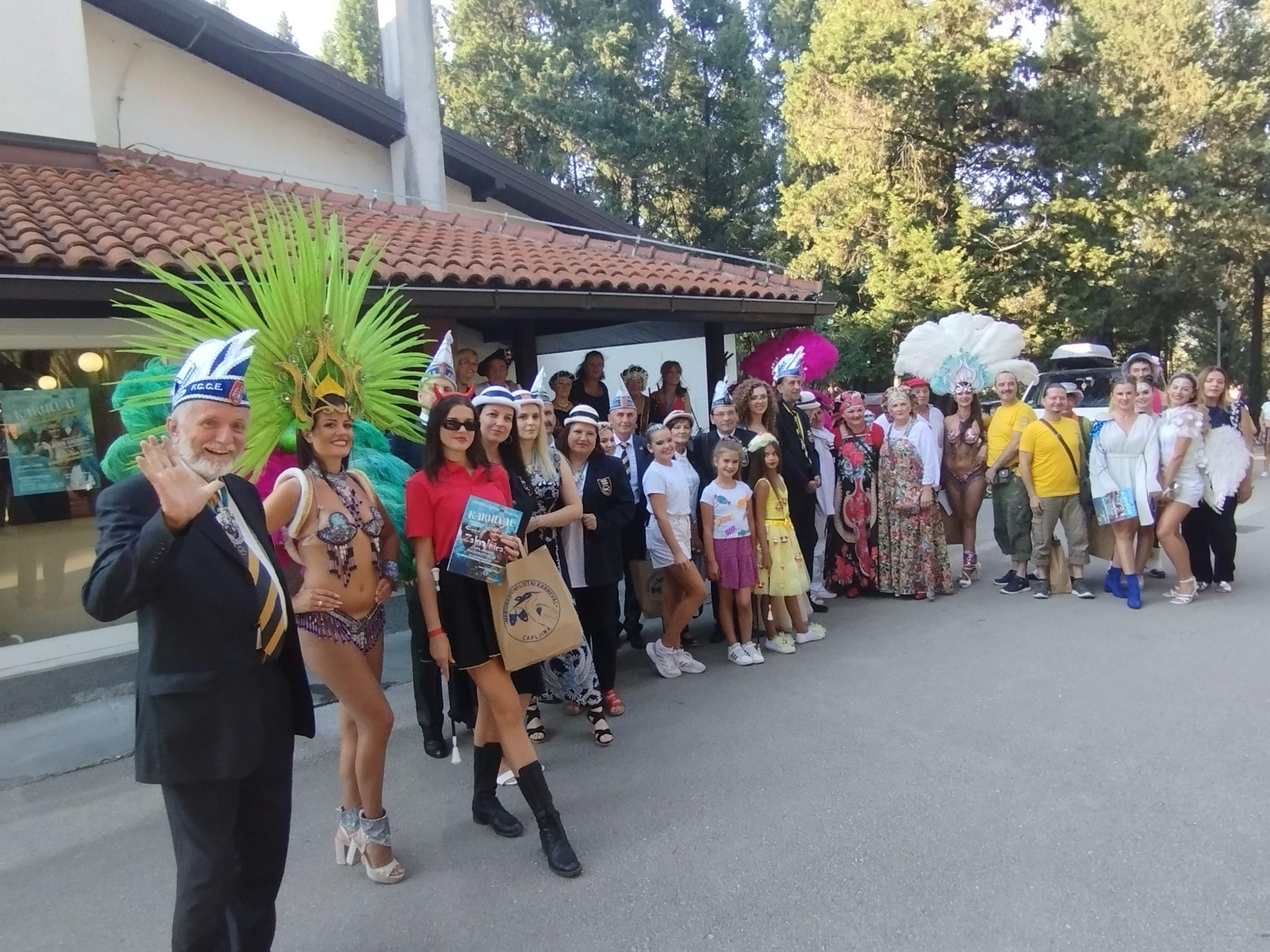 No prije toga,  u motelu Park, u Karaotoku održan je prijem karnevalskih skupina. Djelatnica Turističke organizacije “ČapljinKa” Elena Sesar, predsjednik Turističke organizacije “ČapljinKa” Ivan Raguž te predstavnici grada Čapljine uz prisustvo kraljica karnevala Anđele Ivanković koja je nosila plašt prekriven motivima prepoznatljiv za našu Čapljinu koji su zajednički dizajnirale Snježana Grgić i Ivana Bošković i uz prisustvo potpredsednika FECC-a Branka Brumena pozdravili su sve sudionike i razmijenili prigodne poklone.